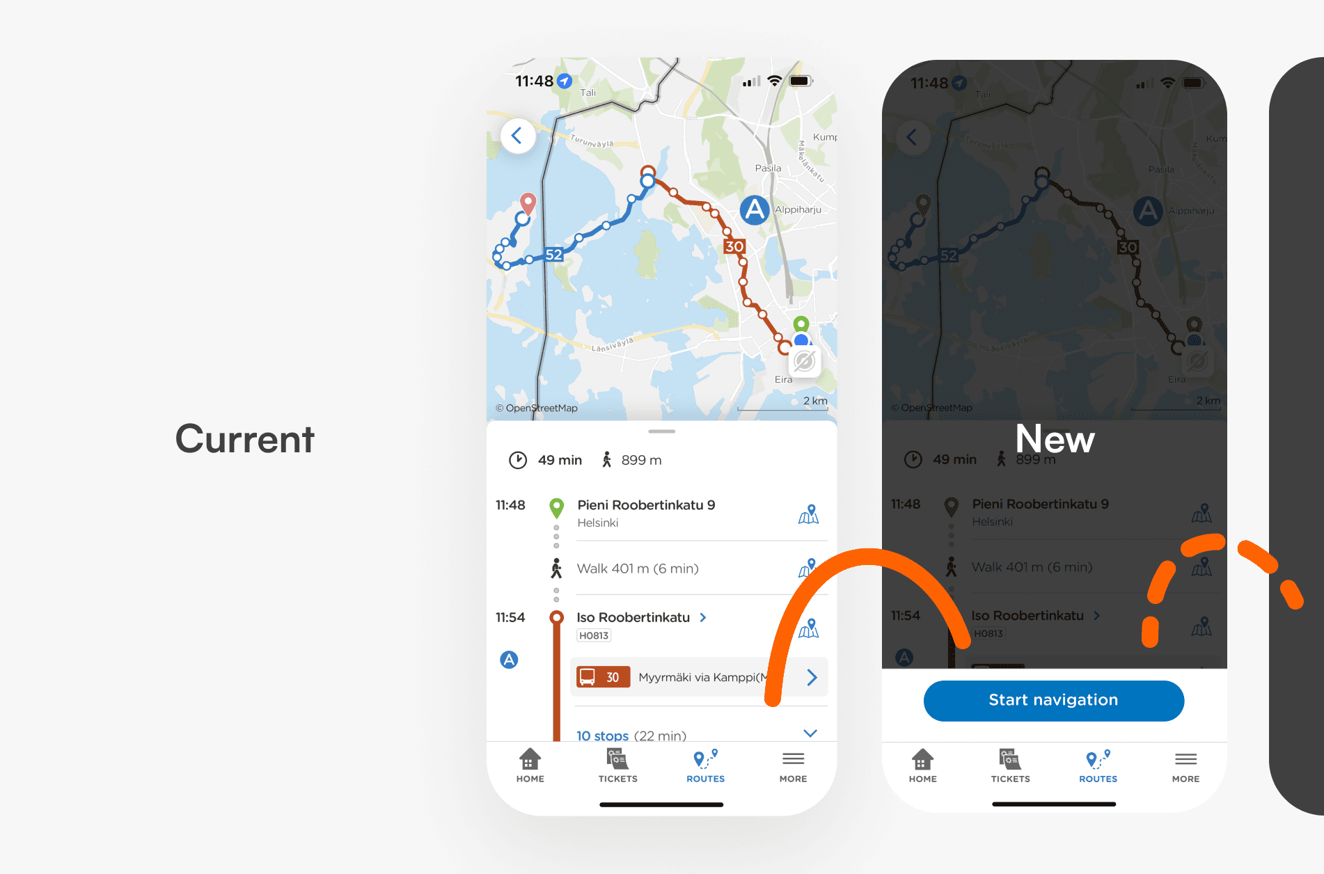 Introducing a new navigation flow after people plan and select their route.